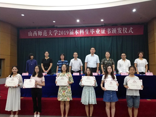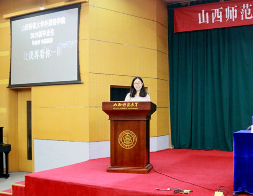 视频结束后,典礼在庄严肃穆的国歌声中正式拉开帷幕。英语系副主任赵阳宣读获得2019届学士学位的毕业生名单,并对194名毕业生表示祝贺。院党委书记郭李鹏随后宣读了2019届优秀毕业生名单,院领导及老师分别为她们颁发了荣誉证书。