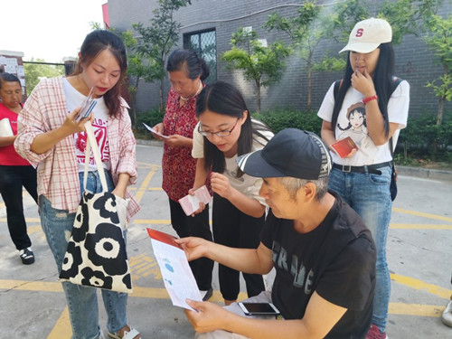 活动前期,宣讲团的队员们通过搜集、学习助学政策的相关内容制作了宣传册。队员们首先选择了人流量较大的学校周边的小区,为家长热情地讲解国家资助政策,让他们对大学的相关政策有了更加深入的了解,他们也对宣讲团的队员们表示了感谢。宣讲过程中偶遇一位83届物理系校友,得知我们来自山西师范大学的时,他格外惊喜,队员们仔细向他宣讲了国家资助政策,他表示国家助学金对于大学生来说不仅是物质上的帮助,更是精神上的鼓励,大学生应当把国家的关怀化为前进的动力,努力学习,同时参加各种社会公益活动,回报社会。