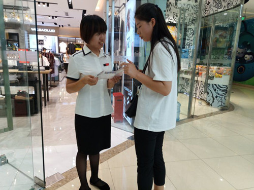 宣讲团的队员们在万达商场为职员讲解国家资助政策