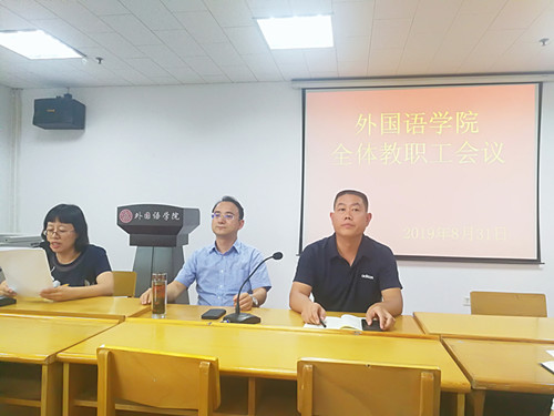 8月31日,太阳官网于11722多媒体会议室召开新学期全体教职工大会。副校长兼15vip太阳集团官网院长王建华、院党委书记郭李鹏、院党委副书记柴文晖、副院长李楠、副院长赵阳、副院长何正兵出席本次会议。会议由郭李鹏主持。