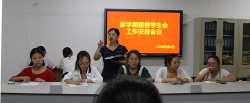 2019年9月4日,太阳官网在11714教室召开新学期团委学生会工作安排会议,院团委黎超主持,团委学生会、青协及英协学生干部参加。