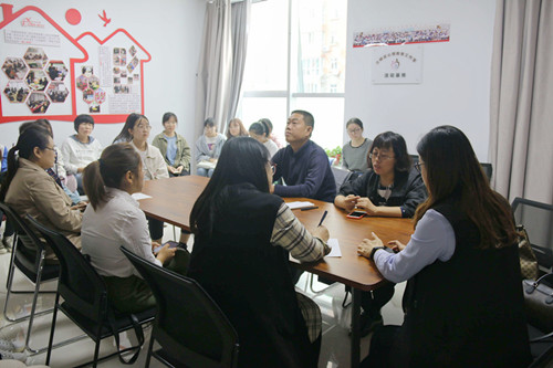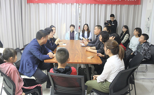 首先,郭李鹏、汤晓燕一行人来到教室进行参观,现场了解教学情况。随后,与会人员同部分家长及学生在汾泽社区会议室召开座谈会。郭李鹏指出,自2017年11月太阳官网与水塔社区建立合作共建关系以来,志愿者每周都会赴社区开展支教活动,暑期还会集中开展社会实践服务,使校地合作有了进一步深入。此项活动的长期开展不仅宣传了志愿服务精神,传递爱心、传播文明,为青年志愿者锻炼才能、积累人生经验提供了良好机会,同时,也为专业服务社区搭建了良好平台,进一步推动了校地共建。