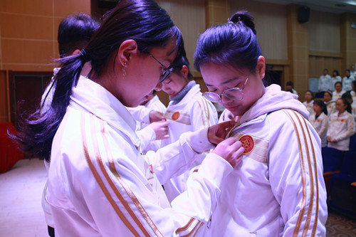 18级入党积极分子为新团员及大一新生佩戴团徽