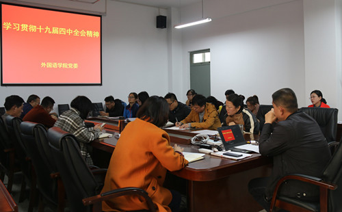 会上,郭李鹏首先带领大家观看了十九届四中全会和黄文秀先进事迹视频,他强调要认真学习贯彻落实十九届四中全会精神,坚持和完善中国特色社会主义制度,不断增强制度自信,维护制度权威,严格按照规定办事,全力推进学院管理工作的制度化进程。要坚持党的领导,坚定理想信念,积极开拓创新;只有坚持党的领导,科学谋划、精心组织,才能应对好各种矛盾、风险和挑战。同时,他号召大家要自觉以黄文秀同志为榜样,将她的精神传承下去,牢记初心使命,勇于奉献担当,并引导学生学习黄文秀的奉献精神和苦干劲头,树立正确的人生观和价值观,为新时代贡献自己的青春力量。