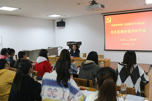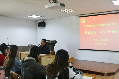 本次培训共有九个专题,通过主题讲座,互动提问等形式开展。校党委副书记高峰讲授了“党的性质、纲领和宗旨”,他阐述了“中国共产党的性质、纲领和宗旨”三方面的内容和党的十九大精神,要求同学们“不忘初心、牢记使命”,并且养成自觉遵守学校规章制度的良好习惯,从多方面提升个人综合素养。机关三总支书记邵晓慧详细地讲解了“党员发展的程序与手续”,让同学们充分了解了发展党员工作的指导方针和原则、入党条件、基本程序和预备党员的转正问题。她要求同学们树立正确的入党动机,自觉接受党组织的培养教育和考察。院党委书记郭李鹏就民主集中制、党的纪律、党的作风进行了详细解释,让学员们对党的组织有了更深刻的认识。他要求各位学员要认真学习弘扬党的优良作风,以高标准、严要求规范自己的言行举止。院党委副书记柴文晖讲授了“不忘初心、牢记使命——做合格共产党员”,她全方位多角度地向同学们阐述了党的初心和使命,深化了同学们的思想认识,督促同学们要发挥先锋模范的作用。