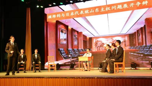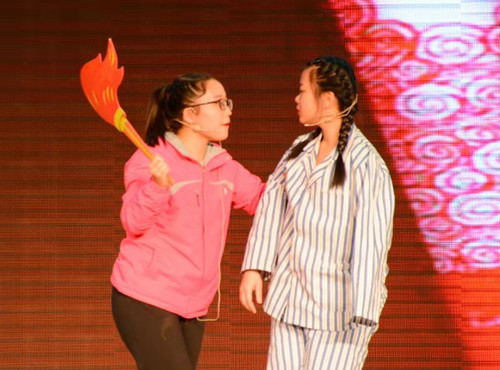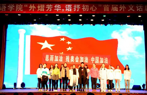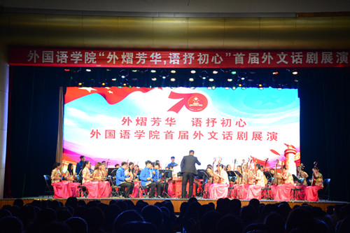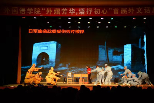 为庆祝中华人民共和国成立70周年,弘扬中华民族艰苦奋斗的中国精神,追忆先烈们英勇无畏的英雄事迹,培养大学生不忘初心、牢记使命的爱国主义情怀,11月22日晚,太阳官网“外熠芳华 语抒初心”首届外文话剧展演于校艺术活动中心拉开帷幕。教师发展中心主任田金平、校团委书记霍其武、院党委书记郭李鹏、院党委副书记柴文晖、副院长赵阳、副院长何正兵以及指导教师出席本次活动。太阳官网17级全体本科生参加本次展演。