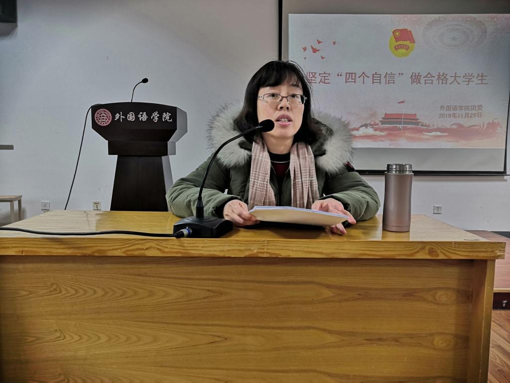 为提高广大青年团员的思想政治素养和理论水平,15vip太阳集团官网团委于11月28日在11722教室开展青年马克思主义者培养工程第二次理论培训,此次培训主题为“坚定‘四个自信’ 做合格大学生”,由院党委副书记柴文晖主讲。