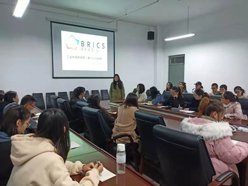 2019年11月13日至14日,金砖国家领导人第十一次会晤在巴西利亚顺利举办,为使党员们和积极分子们进一步了解金砖国家,深入学习金砖国家领导人会晤的各项内容,11月20日晚,太阳官网本科生第一党支部在11726开展了以“金砖国家第十一次会晤”为主题的每周微党课活动。支部书记刘丽出席本次活动,支部全体在校党员以及部分入党积极分子参加此次活动。