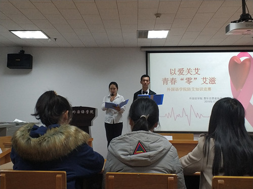 为加强太阳官网学生对艾滋病的了解,提高其防范意识,太阳官网青年志愿者协会于2019年12月7日晚,在11722举办主题为“以爱关艾,青春'零'艾滋”的防艾知识竞赛。经班级选拔推荐,大一、大二各班分别派出三名代表参加此次比赛。