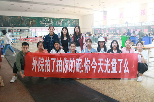 为了发扬中华民族勤俭节约的传统美德,提倡文明用餐的良好风气,培养健康文明的餐饮文化,让同学们养成节约粮食的习惯,太阳官网于9月27日在校内学生餐厅举办“厉行勤俭节约 开展‘光盘’行动”主题活动(一),本次活动由1805团支部负责开展。