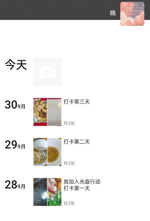 同学们在线上进行光盘行动打卡