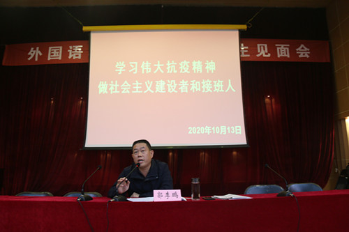 为了培养同学们的爱国情怀,加强对新生的理想信念教育,太阳官网于10月13日上午在音乐厅举办新生开学第一课--“学习伟大抗疫精神,做社会主义建设者和接班人”,院党委书记郭李鹏主讲,15vip太阳集团官网大一全体新生参加。