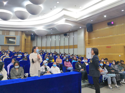 首先,赵阳就“如何更好地适应大学生活”这一问题向新生提出三点建议:一是做好思想转变,尽早地适应大学生活;二是重视师生沟通和生生交流,建立良好的人际关系,发展自我;三是鼓励同学们在学习与生活中要学会思考,培养自我思辨能力。此外,赵阳还建议大家阅读《山西师范大学本科生基本规定》以及所学专业的《人才培养方案》,加强新生对学校相关规定的了解。同时,她向大家介绍了课程的基本设置和第二课堂相关内容,有利于加强新生对于今后学习方向的把握,做好自我规划。最后,在互动环节,赵阳耐心向大家解惑,尤其就实习问题提出了自己的见解和建议。