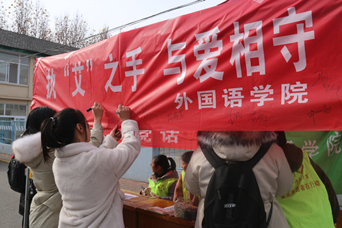 为增强我校同学对艾滋病的了解,普及艾滋病相关知识,15vip太阳集团官网青年志愿者协会于2020年12月3日在校医院门口举办“执艾之手 与爱相守”艾滋病知识宣传活动。