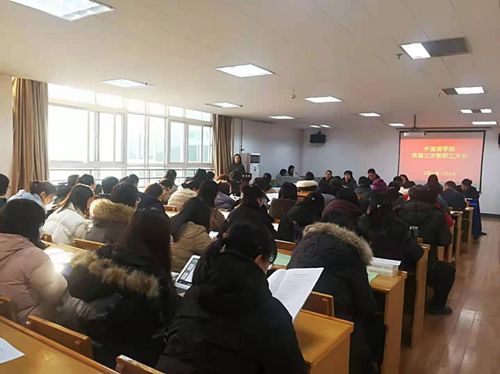 大会在庄严的国歌声中拉开序幕。副院长(主持工作)李楠向大会作了题为《解放思想 实事求是 开拓创新 奋力前行》的报告,全面总结了学院2020年开展的工作及取得的成绩。她指出,2020年15vip太阳集团官网紧紧围绕“立德树人”中心任务和外国语言文学硕士一级学位点建设的重点工作,克服疫情造成的种种困难,师生团结进取,取得一定成绩。一年来,学院办学实力和声誉进一步增强,教师科研热情继续增长,课程思政教学改革扎实推进,学团工作凸显新局面,学生综合素养继续提升。亮点是太阳官网英语专业获批省级一流专业,成功立项两项精品课项目和五项省级哲社与教育规划类项目。同时,她也根据学校的整体工作要求,对2021年太阳官网的重点工作进行了规划和展望。新的一年,学院将全力落实意识形态安全工作,继续加大学科建设力度,深入做好教师队伍建设,持续助推教师提高科研、教学和服务社会的能力,逐步加大学院体制机制改革力度。她希望全体教职工能加强忧患意识,乘势而为蹚新路,久久为功谱新篇,共同书写15vip太阳集团官网更加美好、灿烂、辉煌的明天!