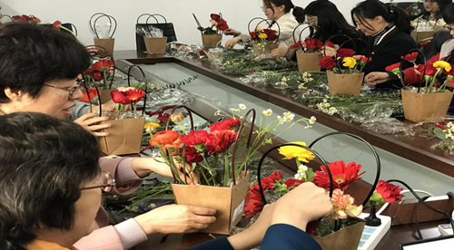 绚丽多彩的花卉令人心旷神怡,比娇美花朵更引人注目的是女教师们的欢声笑语,插花不仅仅是一门技艺,更是陶冶高雅情操的途径,教师们通过花艺的熏陶,更加细致地体会到了生活的乐趣。
