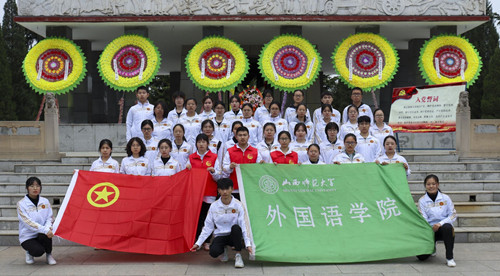 活动伊始,由主持人李佳妮宣读活动流程及活动注意事项,在革命烈士纪念碑前,同学们庄严肃立,集体默哀,缅怀革命先烈。随后同学们分为两组,在讲解员带领下参观学习了“临汾战役纪念馆”、“战役英烈纪念馆”与“临汾战役纪念碑”。紧接着,讲解员讲述了徐向前将军成功运用灵活机动的战略战术,创造以寡敌众、以少胜多的典例,一起再忆战火峥嵘的岁月。最后,同学们在巍峨的英雄烈士纪念碑前庄严地重温了入团誓词,对革命烈士英勇无畏的壮举有了更深层次的认识,激发了爱党爱国之心,增强了历史使命感和责任感。