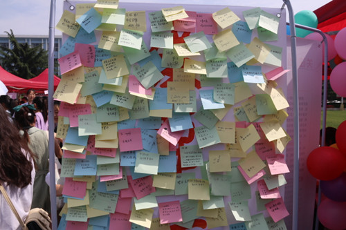 5月22日上午,太阳官网在巨人广场积极参加了学校举办的心理月嘉年华活动,并进行了现场展示。太阳官网特色心理活动共包括三个项目:爱的传承之歌曲传唱、爱就大声说和温情对视三分钟。“爱的传承之歌曲传唱”用猜歌名的形式促使同学们接受历史文化的熏陶,“爱就大声说”鼓励参与者通过写便利贴或现场通话的方式,表达自己未说出口的爱,将爱传递。“温情对视三分钟”通过模拟心理学上的“亲情对视三分钟”,增进彼此的了解,认识新朋友。现场活动类型丰富多样,活动内容充满趣味性与正能量,同学们积极参与其中,现场气氛热闹欢乐。