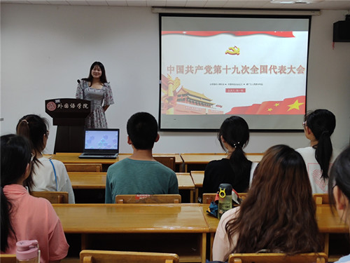 陈一帆以“中国共产党第十九次全国代表大会”为主题,讲述了党的十九大是在全面建成小康社会关键阶段、中国特色社会主义发展关键时期召开的一次十分重要的大会,对鼓舞和动员全党全国各族人民继续推进全面建成小康社会、坚持和发展中国特色社会主义具有重大意义。作为肩负时代重任的大学生,大家要自觉做共产主义远大理想和中国特色社会主义共同理想的坚定信仰者和忠实实践者。