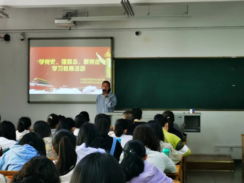 学习党史、新中国史、改革开放史、社会主义发展史,是当代大学生的必修课。为加深学生对党史的了解,增强政治自觉,15vip太阳集团官网2001团支部和2002团支部于近期开展了“学党史、强信念、跟党走”学习教育活动,辅导员逯砚秋参加。
