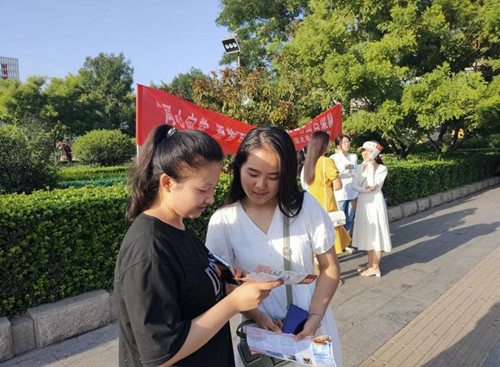 交城市分队选择了三个宣讲实践点。首先是小城中人流量比较大的广场,队员们竖起横幅,进行一对一讲解,随着人数增加,队员开始以演讲的方式宣传相关政策,在讲到习近平总书记的金句“要求新时代的中国青年要以实现中华民族伟大复兴为己任,增强做中国人的志气,骨气,底气,不负时代,不负韶华,不负党和人民的殷切期望”时,人群传来阵阵欢呼,现场气氛活跃,宣讲效果极佳。第二个实践点是当地特色旅游景区卦山。小队成员到达现场后主动向人们介绍我校政策。其中一名已被我校录取的学生家长,夸赞了我校三下乡宣讲政策的及时性,同时也肯定了我校补助政策很大程度上考虑了学生情况,并主动从我队获取宣讲册向亲朋普及。最后一个实践点是新建的公园。公园人流量较大,小队成员分为两组,一组布置横幅,一组向人们讲解我校政策,小队成员针对不同的宣讲对象采取了不同的宣讲方式,并就相关问题进行了耐心解答,赢得大家一致好评。
