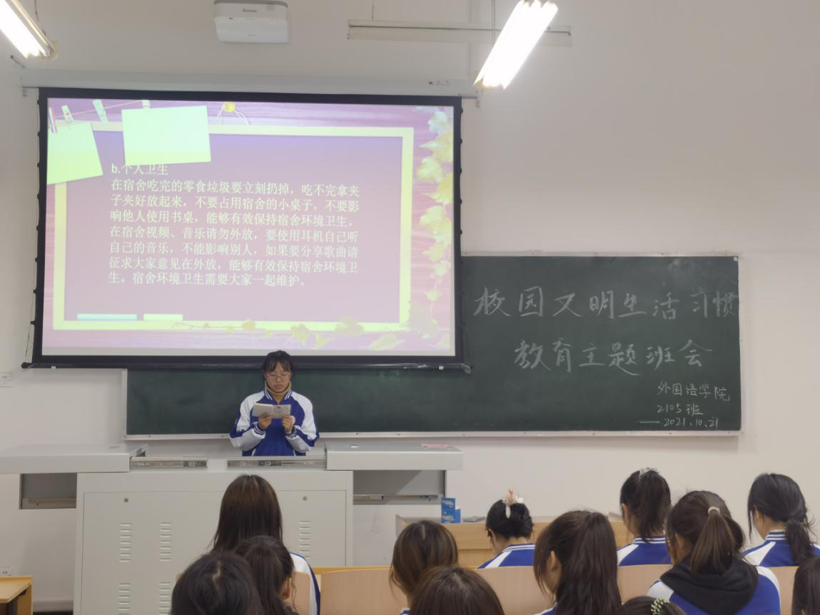 19级主要采取宿舍走访检查的形式,从宿舍安全和卫生情况两方面入手,重点检查了宿舍用电安全相关问题,并进行了宿舍卫生评比,确保了校园生活的安全与整洁,并在检查后针对各宿舍具体情况做出了相应的安全指导与卫生细则讲解,加深了大家对校园文明生活习惯养成的重视程度。20级与21级以开展线下班会的形式,对大家进行了校园文明生活习惯养成教育。各班采用PPT讲解的方式,主要由各班长,生活委员和安全委员分别讲解校园文明养成的重要性,宿舍卫生注意事项,查寝细则及宿舍用电安全注意事项等。会后,同学们收获颇丰,大家对未来校园文明建设充满了信心。