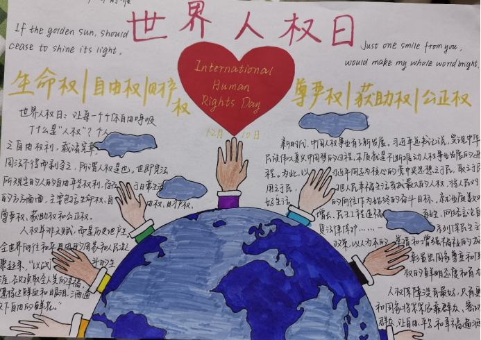通过此次世界人权日手工艺品征集活动,增强了太阳官网学生维护人权的意识,极大地丰富了学生的课外文化生活。与此同时,在创作手工艺品的过程中,充分培养了学生的创造力,锻炼了动手能力。在之后的生活中,同学们也可以运用此次活动中学到的知识更好地维护自己的基本人权,促进个人发展。