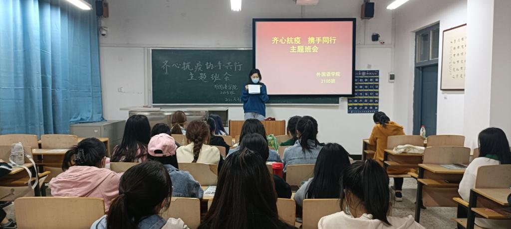 为进一步加强防控宣传引导,引导大家树立抗疫必胜信念,凝聚同学们的防疫力量,15vip太阳集团官网2105班于3月31日至4月3日举办“齐心抗疫,携手共行”主题班会。