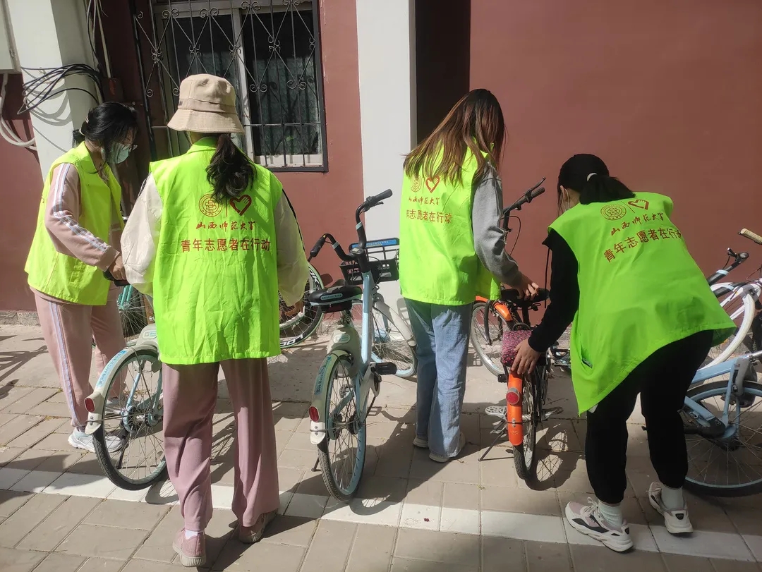 本次活动共三个内容,分三个小组于不同时间段依次进行。第一小组同学们共同对四号、五号宿舍楼前后草坪与道路上的垃圾、杂物进行清扫,让宿舍楼周围环境更加美观;第二小组同学们共同将宿舍楼周围区域内的共享单车与自行车摆放整齐,使单车存放地点更加整齐,使用更加便捷;第三小组同学们共同对四号教学楼教室内黑板与桌椅进行擦拭,为同学们上课与自习提供良好的学习环境。活动期间,各组同学们认真劳动,积极合作,圆满完成了本次志愿服务活动。