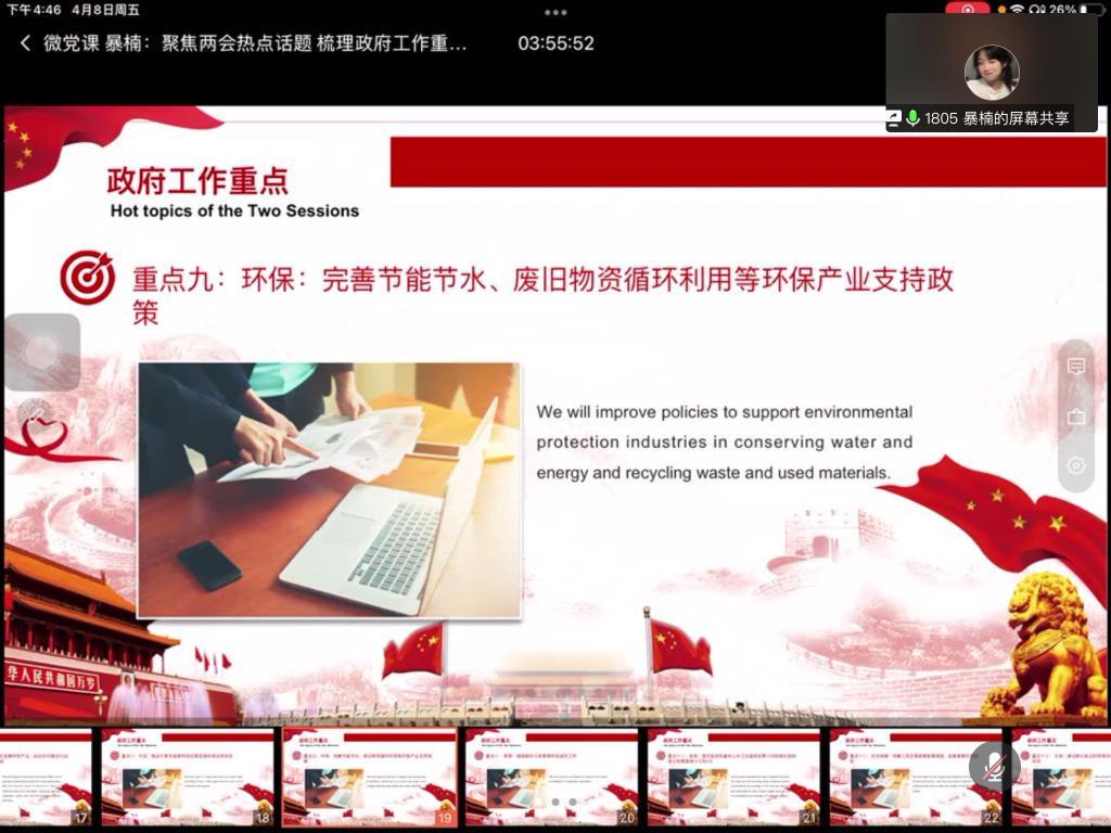 4月8日下午,15vip太阳集团官网本科生第二党支部在腾讯会议开展双语微党课活动。参加本次微党课的有党员以及部分入党积极分子。此次微党课由预备党员王亚尧,张加和暴楠主讲。