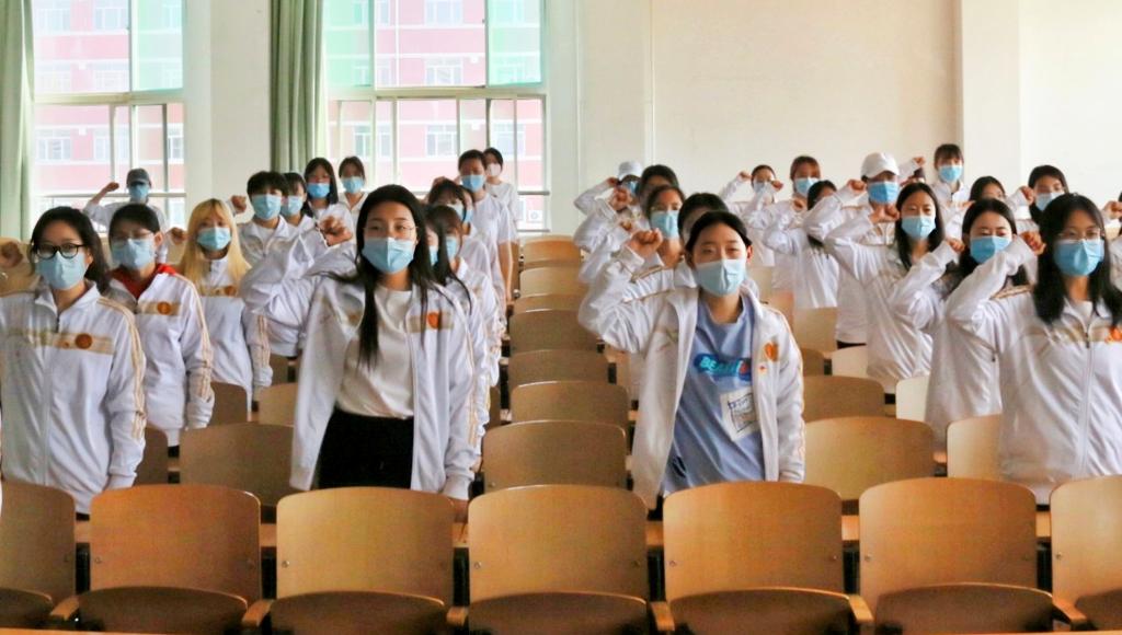 活动伊始,全体同学起立合唱团歌,并重温了入团誓词。武飞义为大家介绍了中共一大、二大、十八大与十九大的相关内容以及“共和国勋章”获得者的事迹。在讨论环节,同学们积极分享自己的想法,表明了以实现中华民族伟大复兴为己任和担当起时代赋予的光荣使命的决心。随后,团支部成员表演了《红岩颂》情景剧,回顾了新中国成立之前,以江姐为代表的共产党人艰苦奋斗的英雄事迹。李婧以“红星照耀中国”为主题做了英语演讲,流利的口语和丰沛的情感感染了在场同学,赢得阵阵掌声。在南区操场上,大家集体合唱了《团结就是力量》、《歌唱祖国》、《没有共产党就没有新中国》等经典曲目,以歌声回顾党史,用旋律铭记初心。接着,同学们积极参加到党团知识竞赛中,大家争先恐后,踊跃抢答,并以“奋进新青年,献礼新征程”为主题进行交流分享,表达了对党和祖国的热爱之情。此外,同学们也制作了主题手抄报,并在展板上用便利贴写下自己对即将召开的党的二十大的美好寄语。