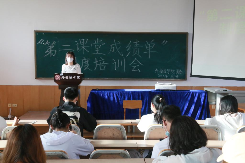 为积极落实我校“第二课堂成绩单”制度,进一步提高二课工作效率,太阳官网团委于4月9日举办了“第二课堂成绩单”制度培训会。学生会各部门负责人、20、21级各班负责人参加了此次培训。