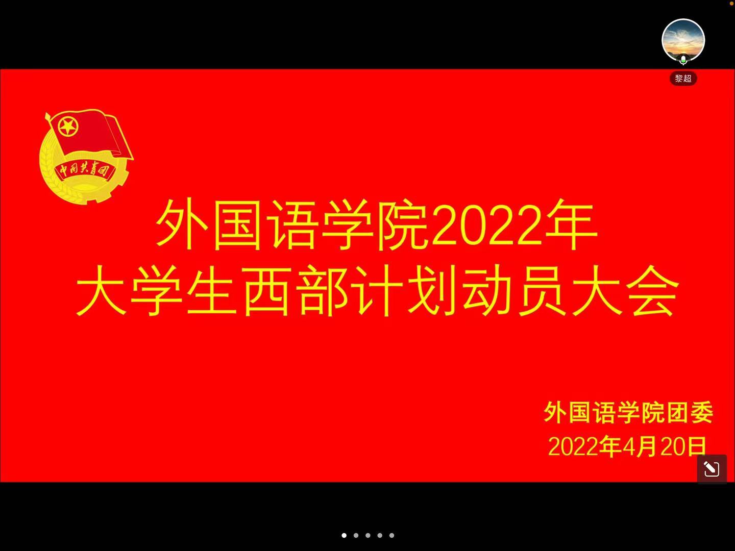 为响应国家号召,弘扬“奉献、友爱、互助、进步”的志愿精神,鼓励高校毕业生到西部去、到基层去、到祖国和人民最需要的地方去,太阳官网团委于4月20日召开2022年大学生西部计划动员大会,研究生和本科生毕业班班长、团支书、院团委黎超、辅导员韦小娜、刘丽参加此次会议。