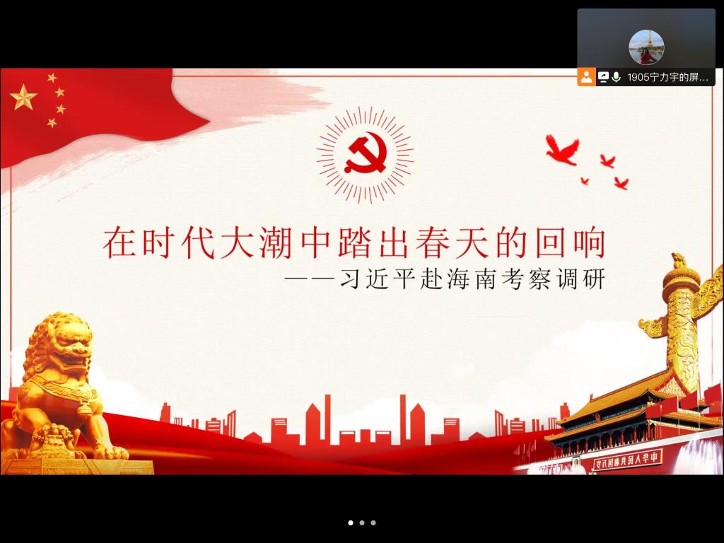 韩佳泽以“在时代大潮中踏出春天的回响”为主题,分别从种业创新、发展海洋科技、国家公园建设、海南自贸港和干部队伍建设五方面向大家介绍了习近平赴海南考察调研的有关内容,使同学们深刻领悟到作为当代大学生应该具备持续学习的能力、不断创新的意识和敢于实践的行动,要时刻将个人的发展同祖国的需要紧密结合起来。
