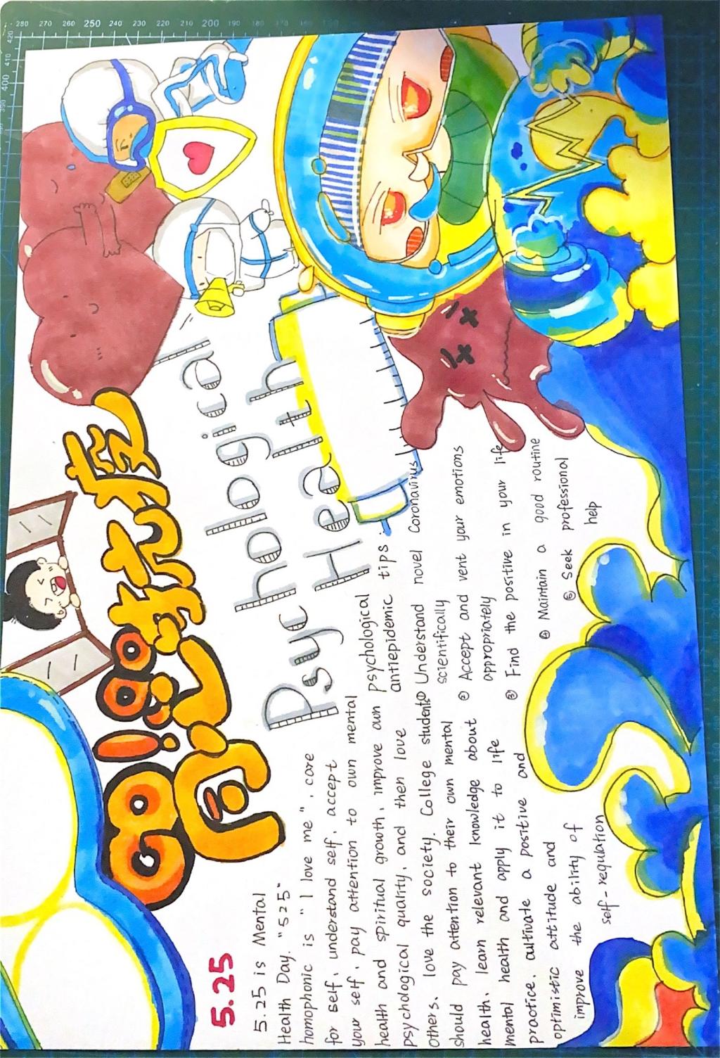 同时,太阳官网结合专业特色,还开展了心理健康特色系列活动。在“以体育心,心随我动”运动打卡活动中,同学们进行跑步、跳绳、跳健身操等运动,在挥洒汗水的同时为心赋能。在“爱我护我,以朗抒情”美文朗诵活动中,同学们用英语诵读经典美文,诠释了对生命力量的理解,表明了在逆境中仍要披荆斩棘、追求梦想的态度。在“同‘心’抗疫,共绘美好”手抄报征集活动中,大家绘制了一幅幅内容丰富、布局新颖的作品,让心灵在笔尖绽放,用色彩描绘斑斓人生。