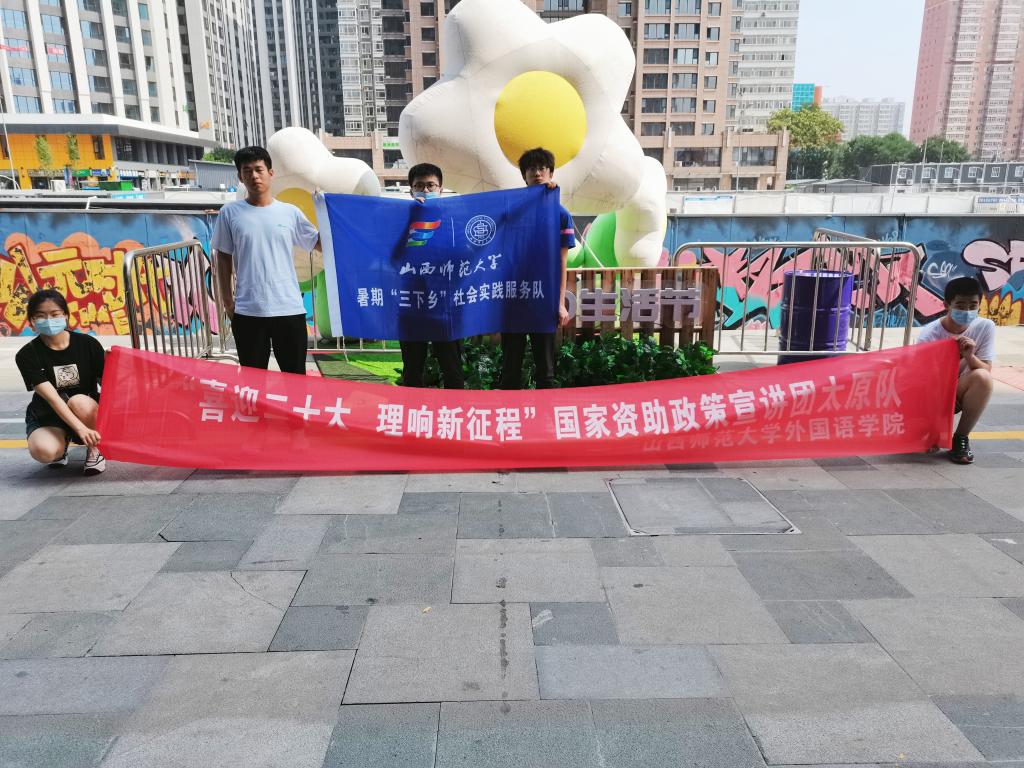 在疫情防控的要求下,队员们在各自所在的县区开展宣讲活动。在宣讲过程中,大家向群众介绍了习近平新时代中国特色社会主义思想,传达了习近平总书记关于青年工作的重要思想;同时,队员们宣讲了国家奖助学金政策,介绍了山西师范大学的公费师范生政策,以及我校新增加的师范生免试认定教师资格证政策,并向群众发放宣传册,以便群众深入了解我校的相关政策,增加了高考毕业生报考山西师范大学的热情。本次宣讲活动,紧扣“喜迎二十大,理响新征程”主题,准确传达了国家政策精神,赢得了太原市当地群众的热烈欢迎。