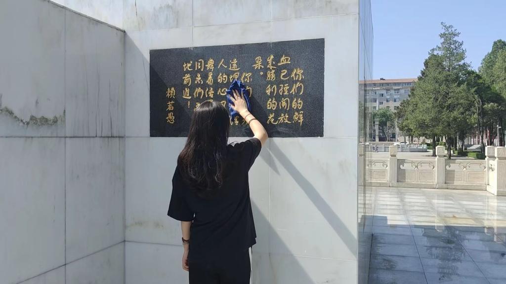青山留名史,烽火淬英豪。实践队员们来到了太行太岳烈士陵园,大家都被陵园中庄严肃穆的气氛所感染,内心是无尽的缅怀与悼念。参观结束后,大家怀着更崇敬的心向着纪念碑默哀三分钟,并庄严宣誓,以这种方式寄托我们的哀思。祭扫烈士墓,并且回顾党的历史和先烈的英勇事迹,深刻体会革命先烈坚定的理想信念。