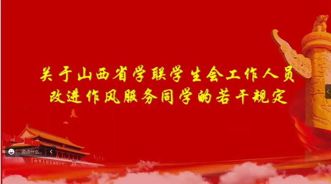 为积极响应学联学生会的号召,促进团委学生会工作的顺利开展,15vip太阳集团官网于10月1日通过线上会议组织学生会工作人员共同学习了《关于学联学生会工作人员改进作风服务同学的若干规定》。院团委黎超、辅导员陈昱以及15vip太阳集团官网学生组织参加会议,张思彤主持会议。