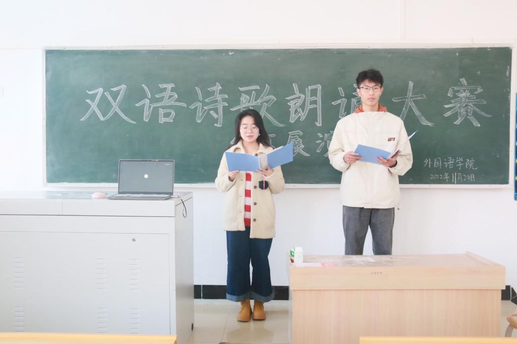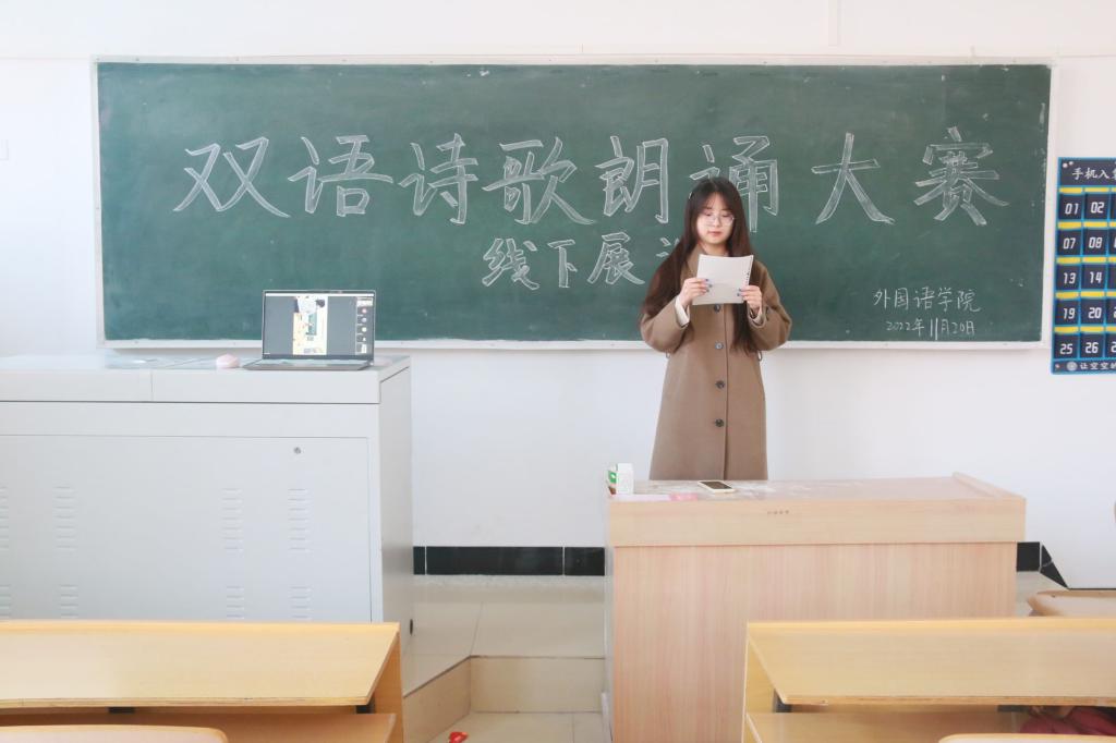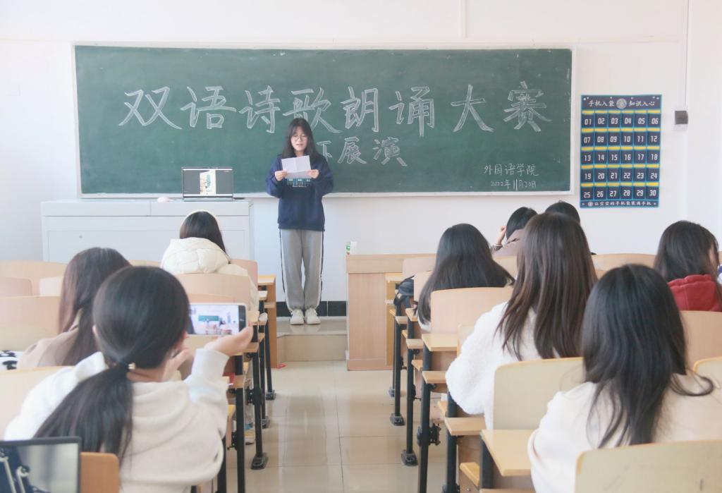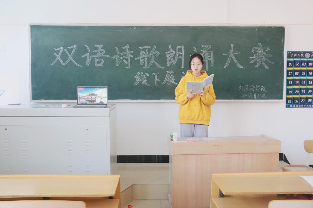 为弘扬中华优秀传统美德,鼓励同学们积极践行社会主义核心价值观,太阳官网于11月20日上午在南区五号楼405教室举办“学习二十大 永远跟党走 奋进新征程”双语诗歌朗诵大赛线下展演。