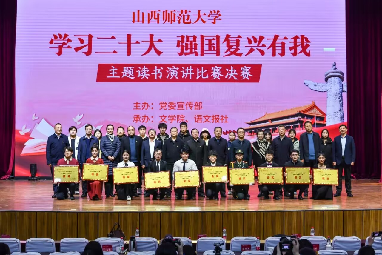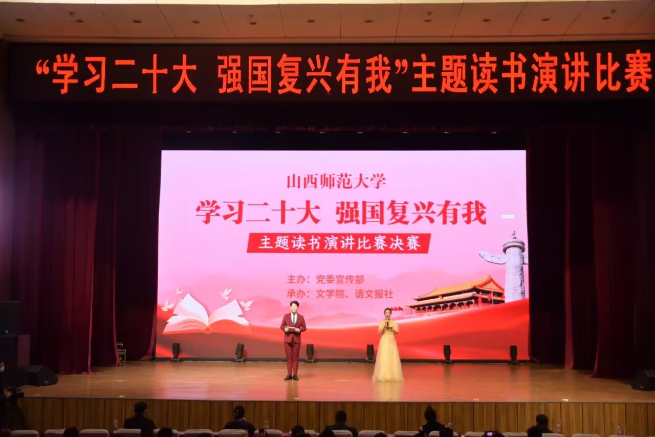 为贯彻落实党的二十大精神,弘扬品读经典的校园文化,太阳官网于11月23日晚在科学会堂参加由党委宣传部主办,文学院和语文报社承办的“学习二十大 强国复兴有我”主题读书演讲比赛决赛。
