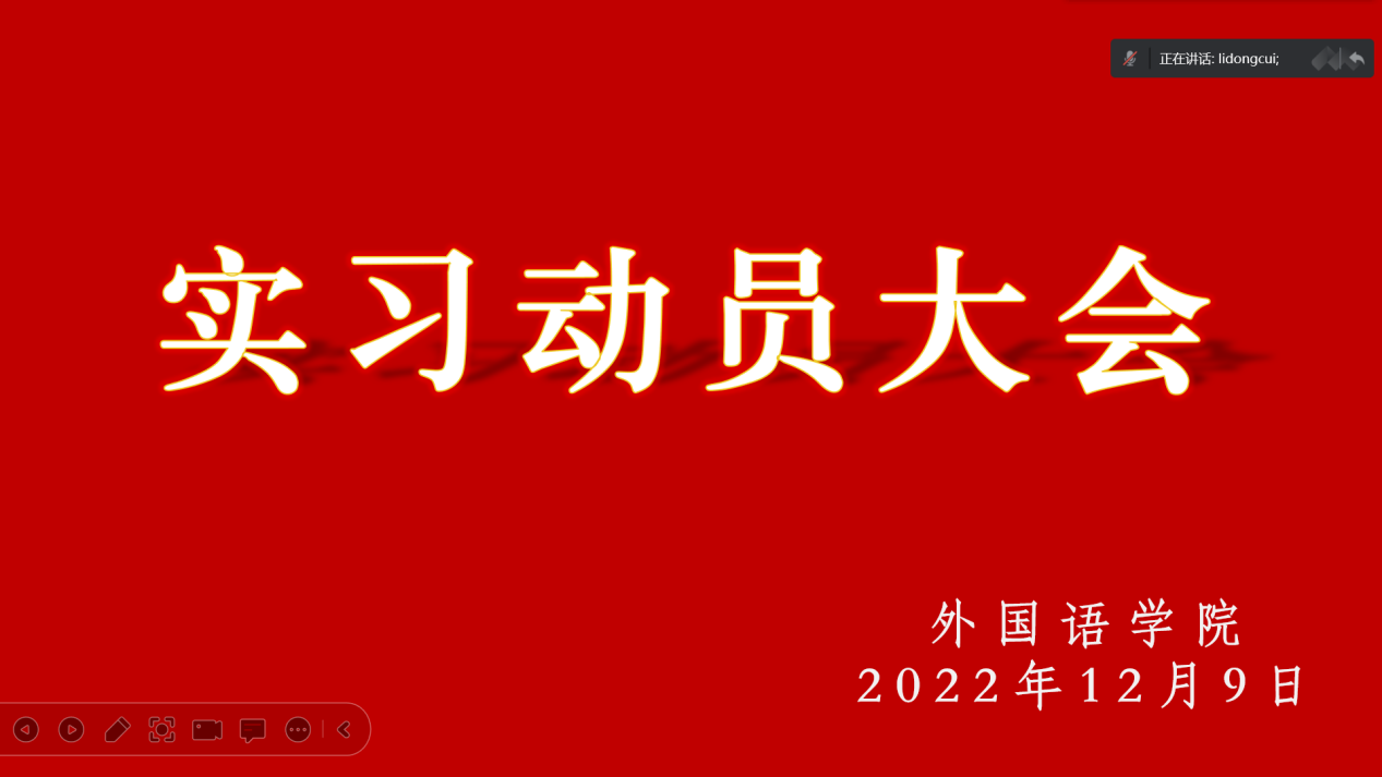为使日语系19级毕业生更好了解毕业实习的重要性,做好实习的充分准备,太阳官网于12月9日下午3点,以线上腾讯会议的形式召开了毕业实习动员大会。此次会议由日语系主任李冬翠主持,学院党委副书记李飞、副院长黄远鹏、辅导员陈昱出席了本次会议。