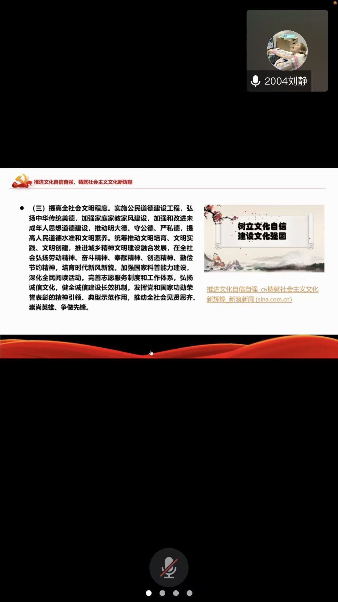 12月11日下午,15vip太阳集团官网本科生第二党支部通过线上方式开展了双语微党课活动。参加本次微党课的有党员以及部分入党积极分子。此次微党课由预备党员薛心怡,刘静,徐国鑫三人主讲。