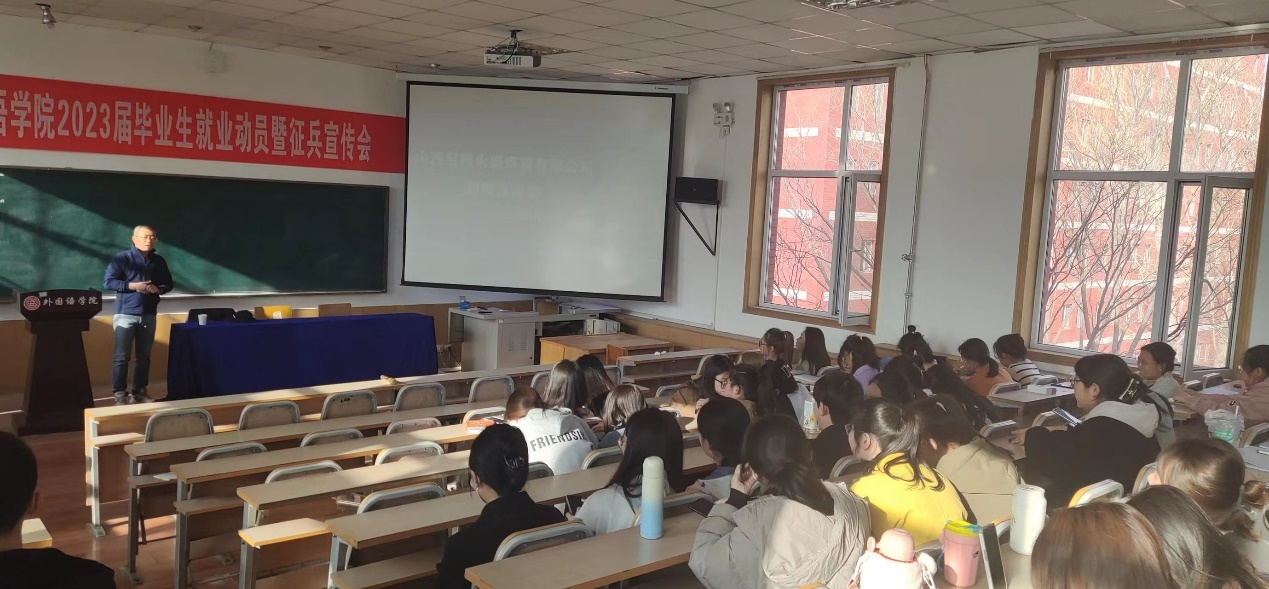 山西启扬永盛商贸有限公司向与会同学介绍了公司的创立背景及企业文化,并对招聘岗位要求以及具体的薪酬福利等做了详细的介绍。同学们积极提问,了解与自身发展及就业相关的问题。