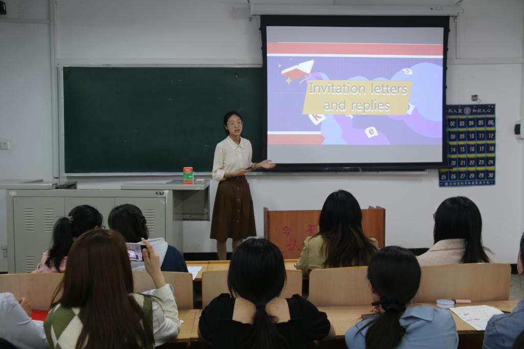赛前,主持人刘雪婷宣读比赛规则和评分细则,鼓励各位参赛选手赛出水平、赛出风采。赛中,选手们热情饱满、准备充分,以完整的教学设计和流畅的英语表达向大家呈现了一场精彩的英语讲课“盛宴”。参赛选手与在场观众积极互动,现场气氛活跃。最后,评委根据教学内容、课件制作、板书设计等方面综合评分。张栩敏、程雨婧和王甜宇三名选手成功入选我校“未来教师成长训练营”。