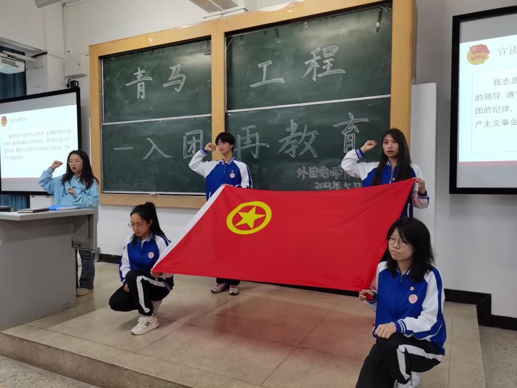 活动伊始,邓冉阐述了本次活动的主要目的,即增强学员对党团知识的了解,明确团员的义务与权利。随后,郝川舒、李欣、侯文清带领学员们学习了党团知识,回顾了党史与校史,了解了学风建设的相关内容。通过讲解,学员们明白了宿舍安全、文明监督与餐厅督察的重要性,同时进一步提高了学员拥护党的决心和爱校荣校意识。接着,21级优秀团员代表张新苗发言,她带领青马学员学习了习近平总书记的青年观,鼓励学员们不仅要掌握马克思主义的立场、观点、方法,还要坚定马克思主义的理想信念。随后,青马学员在团旗下重温入团誓词,佩戴团徽,大家纷纷表示将以身作则,在学习生活中不断磨练自己,成为具有良好素养的优秀青年。
