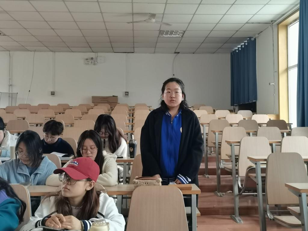 张妍以“聚焦两会,凝聚奋进力量”为主题,讲解了2023年两会知识和《政府工作报告》中的主要内容,鼓励同学们要把握时代脉搏,汇聚磅礴力量,发出当代学子的最强音。
