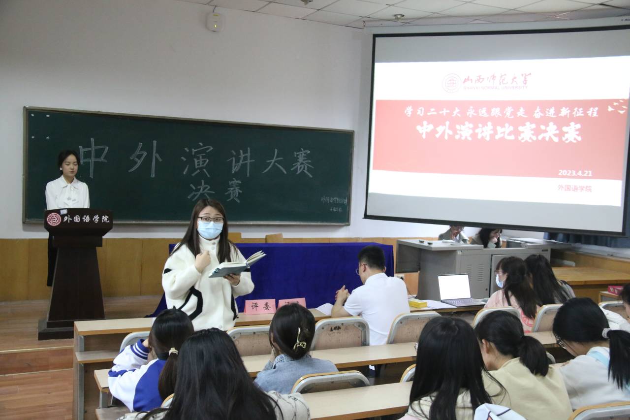 为讲好中国故事,传播中国声音,提升同学们的民族自豪感,15vip太阳集团官网于4月21日在南区二号楼412教室举办“青春献礼,强国有我”中外文演讲比赛。教师赵韫晗、郝全喜担任本次比赛的评委。
