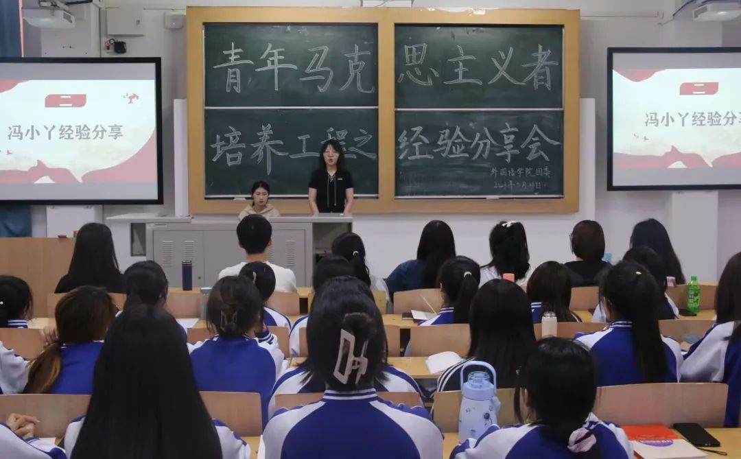 首先,孙熠辉强调了第二课堂对于推动个人发展的重要性并鼓励同学们积极参与实践活动。接着,冯小丫从专业学习方面建议青马学员们要从听说读写译五个方面进行针对性学习,为日后考研保研打下坚实基础。最后,赵卓雯从职业规划角度对青马学员们提出四点建议:做有少年心气的人;做有稳定情绪的人;做有责任担当的人;做有明确规划的人。