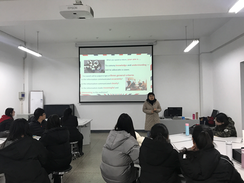 2019年1月2日下午,15vip太阳集团官网杨慧老师在11609教室举办了题为“演讲的艺术之信息性演讲”的专题讲座,我校英语专业部分学生参加并聆听了本次讲座。