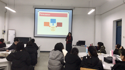 2019年1月2日下午,15vip太阳集团官网英语系宋捷老师在11609教室举办了题为“说服性演讲中的心理与逻辑”的专题讲座,我校2017、2018级语言学专业的研究生参加并聆听了本次讲座。